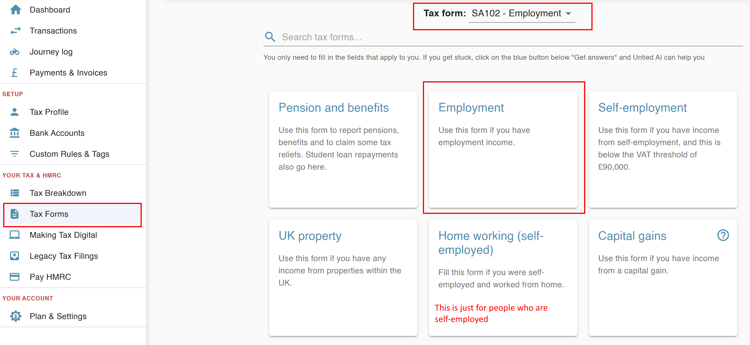 Scroll down and you can enter your employment expenses - remember to Save!